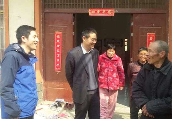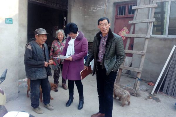 颍东区第五届人大代表袁双方(左二)走访看望新华街道任海村贫困户。
