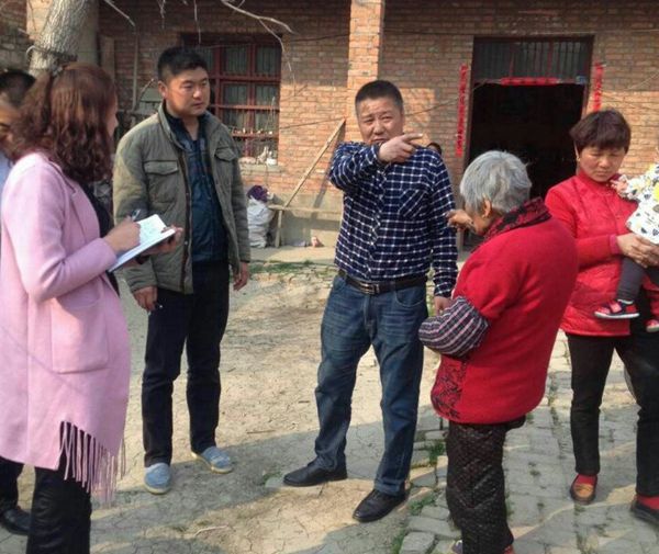 颍东区第五届人大代表杜云南(右四)走访看望新华街道杨付村贫困户。