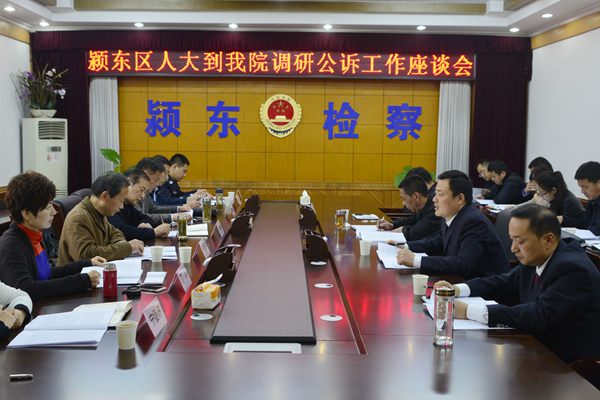 日前,颍东区人大常委会副主任王信林带领调研组,对区人民检察院公诉工作进行调研。调研组听取了区人民检察院关于公诉工作情况的汇报,召集院科室局负责人座谈,并征求了区人民法院、颍东公安分局及勇胜律师事务所对区人民检察院公诉工作的意见和建议。