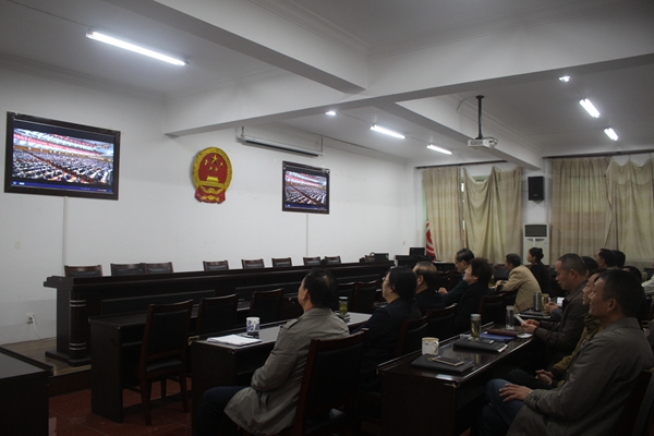 10月18日上午,颍东区人大常委会机关组织党员干部收看中国共产党第十九次全国代表大会开幕式。