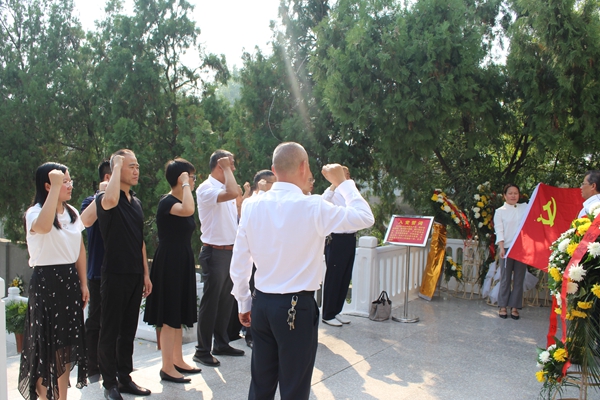 在四九烈士纪念碑前,大家为烈士敬献花篮,区人大机关第一支部书记、人选工委主任张建华仔细整理花篮缎带。激昂雄壮的《义勇军进行曲》响起,大家同唱中华人民共和国国歌,国歌唱毕,全场向为民族解放和人民革命事业英勇献身的革命烈士三鞠躬。在张建华的领誓下,机关干部重温了入党誓词。随后,大家围绕烈士纪念碑缓步绕行,瞻仰烈士群雕,寄托对英烈的深切缅怀和崇高敬意,继承先烈遗志、弘扬烈士精神,不忘初心,牢记使命,为颍东建设发展继续砥砺前行、拼搏奋斗。(常涛)